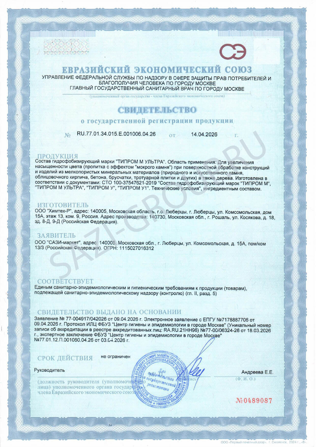 • Свидетельство о госрегистрации Свидетельство о госрегистрации Типром А Сертификат соответствия Типром А